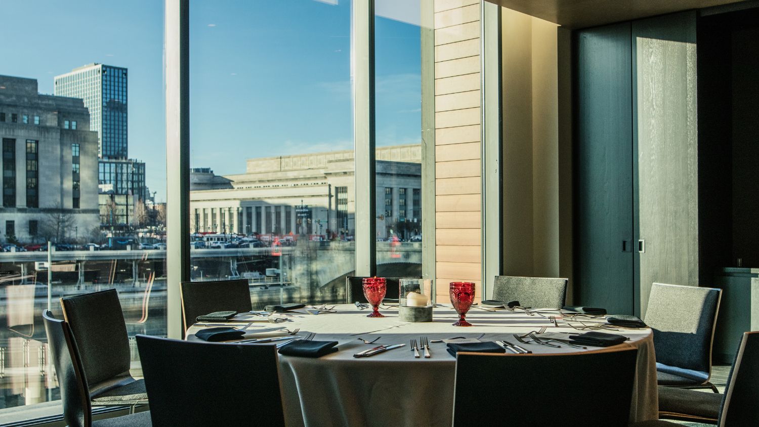 From wake up to wind down. The sweeping views of the Schuylkill River, from the University City skyline to the Art Museum in The Dining Room, an all-day hangout with a morning-to-night menu in The Bar & Lounge, and part sports bar, part social hub in The Back Bar.